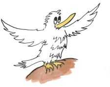 " Is that what happened to your aeroplane?" said Albi. " It fell out the sky?" Albi tried to point at the sky with his wing but as he could only point sideways the gesture was rather lost. " Sort of." said the Pilot. " Anyway what I wanted to ask was where is the nearest land." " How should I know." said Albi. " I'm an Albatross." |