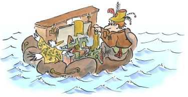 ![]() In the morning Albi and the Pilot were lucky enough to come across a breakfast bloom. A strange phenomenon that happens when the first few rays of the morning sun hit patches of flowering Seapig Seaweed. This only happens when there is an 'R' in the month. The seaweed will suddenly burst forth with ample helpings of bacon, eggs and marmalade toast. After breakfast Pilot returned to the problem of finding land. |