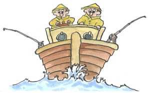 ![]() The dingy had drifted toward the shore during the night while they were singing the Mikado. The singing had attracted the attention of a friendly fishing boat that was now heading towards them. |