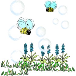 Alfi, far from being sad at seeing his bubbles being burst, thought that it was fun and started blowing more bubbles. The bees were buzzing around like wild things, while Alfi was blowing more and more bubbles. The buzzy bees got so out of breath they had to go back to a large daisy for a rest and a cup of nectar.