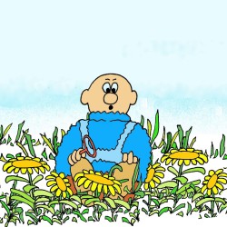 All the bees zoomed down to collect up the pollen and take it back to the hive. When all the bees had gone Alfi found himself left on his own, sitting in the middle of the flowers, clutching his bubble stick.