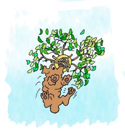 Holding onto as many twigs as the Rooks could get into the donut shaped ring, Podd jumped from the branch of the tree.