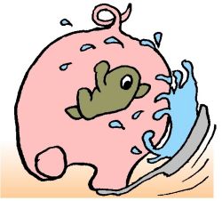 Percys back leg hit the Frying pans handle, sent Barnaby Frog out with a tumble.