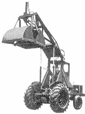 (Above) The Neal type GM mobile crane, a 15 cwt machine with a 5.57m (15 ft) jib, which was sold widely during the 1950s. (Right) The Neal Pelican loader, a grabbing crane built on a Fordson tractor chassis. This machine was specially designed for unloading bulk materials from railway wagons. |