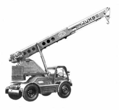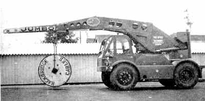 The earliest Hydracranes 1946 were built on ex-war department chassis. When the supply of these ran out, Taylor's built their own chassis. During the 1950s, developments of the Hydracranes, notably the Taylor Jumbo Junior and the Jumbo the latter so called after its peculiarly articulating jib were sold extensively in the UK and overseas: all told about 1000 were delivered. |