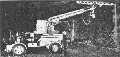 These Jumbo cranes being small and maneuverable were used and adapted for mining. Taylors was also making specialist mining equipment such as this drilling machine. The use of hydraulic rams being used to position the drill as well as push it into the coal face |