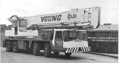 The most significant thing about this generation of crane was the development of the stabilised telescopic arm. This could extend uniformly without affecting the position of the load being lifted. (Select here for details of how these telescopic arms work.) The hydraulic telescopic part of the crane arm was often supplemented a manual extension and by a fly jib. These extensions were used to extended reach of the crane. The fly jib was carried ether under or at the side of the normal jib. |