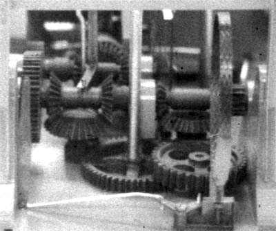 A secondary function of the large gear on the upper platform was to provide motion to the crane carriage. When the rotating platform was locked onto the carriage the small cog gear rotated the large gear transferring rotation to a shaft down into the carriage than then onto the driving wheels. This large central slew gear can be seen on this image of the gears from the 3 ton 1928 mobile.