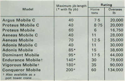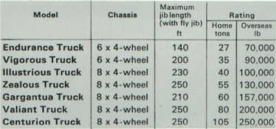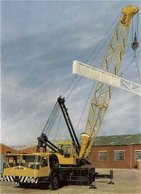 ![]() COLES TRUCK TOWER CRANES Vastly superior height of lift and outreach plus fast road travel between sites, the ability to work close up against buildings in narrow streets or congested sites and to extend a load far out over tall structures. All these plus the ability to quickly convert to strut jib operation, make Coles truck tower cranes a potent weapon in the fight for increased profits. ![]() |
