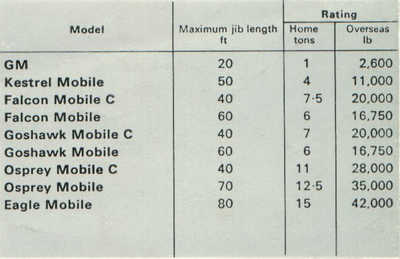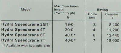 ![]() COLES HYDRA SPEEDCRANES General purpose machines of great versatility, these Coles Speedcranes beat tight work schedules, load, stack, carry and increase profit margins all round. Fast around the site, fast in operation, Coles diesel-hydraulic Speedcranes with telescopic booms prove their worth in the tightest corners. ![]() |