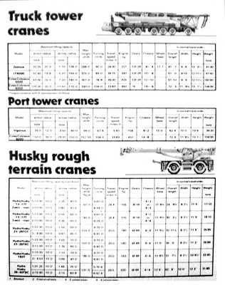 Self propelled mobiles With capacities from five to 70 tons these highly efficient machines are working in factories, yards, poets and terminals throughout the world. Husky rough terrain cranes Specially designed for working on unmade ground, Hydra Husky cranes are mounted on four wheel drive, four wheel steer chassis offering the best in strength and manoeuvrability. Hydra Speed cranes These medium capacity general purpose cranes have excellent low-headroom characteristics and provide good outreach on the telescopic boom, plus excellent manoeuvrability through the front wheel steer, rear wheel drive chassis configuration. Diesel electric truck / truck tower cranes These machines which can work as conventional strut jib cranes or in tower configurations, are ideal for heavy duty lifting. They combine exceptional height of lift capability with a facility for fast inter site travel. Hydra truck cranes These telescopic boom cranes are capable of fast road travel, complying with the most stringent highway regulations, and they have excellent on site performance. They range in maximum lifting capacities from 10 to 100 tons. |