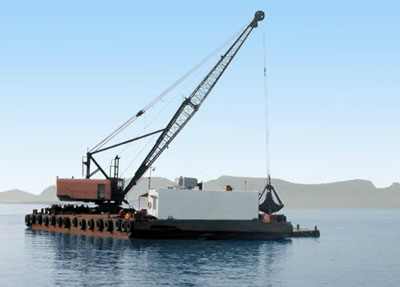 ![]() Barge mounted crane designed for heavy lifting in or near a marine environment. Some of these cranes are very big lifting hundreds of tons. |