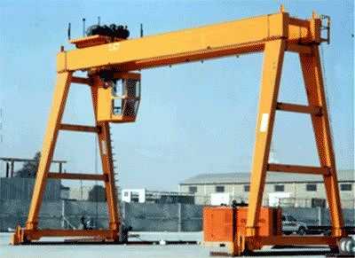 ![]() A traveling cable winch attached to a wide beam stretching between rails supported at high level. The supports can be static with the crane beam traveling along them overhead in a factory building or the support can be in the form of legs that move on ground rails, a type often used in shipyards. |
