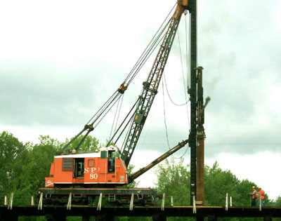 ![]() Track mounted cranes designed for construction sites. Fitted with vertical mast boom and screw or hammer action pile driving equipment. |