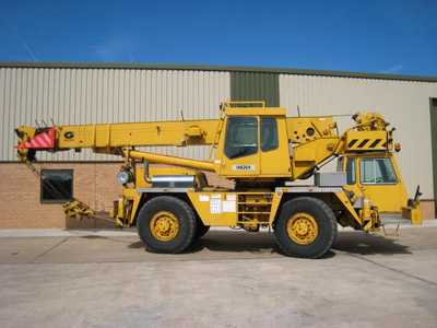 TYPE DATABASE - Transit - Ranger - All Terrain The illustrations show the main types of crane, CLICK on any IMAGE of these to go to a page dealing with that type of unit. This will have photographs and any details available. All terrain units were introduced by an increased demand for road travelling rough terrain machines capable of driving them selves to site operations. The Transit, the first of which was made in 1974, was a rugged version of the standard truck crane. The 515 Transit was a redesign of the original Husky 15T The All Terrain (AT) and Ranger units made from 1978 were Huskys adapted for distance road travel. Placing a driving cab on the chassis as well as a slewing cab, the 530 however took a different path having a swing cab allowing the driver sufficient vision for road travel. The TT865 marked the point when the difference between road and route terrain merged. Although badged as a Grove this machine was the last crane to be fully designed and built at the Sunderland works. . |