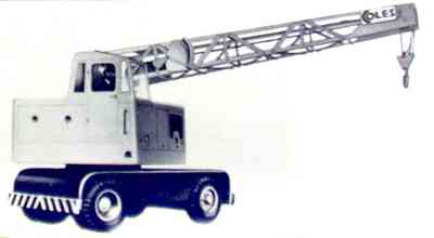 ![]() Smaller lighter petrol engines made the compact mobile crane possible. This crane shows where Coles is going with design and configuration. Taking the simplicity of the petrol electric configuration we see the design becoming compact and flexible. This is the machine that was to form the template of the machine that was to make Coles a world known brand in the lifting world, the EMA. goto - DATABASE |