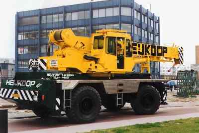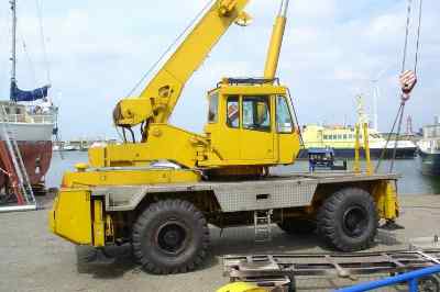 Notes - To make the Husky TSC suitable for extended road use Coles came up with the swing cab. Driving from the normal forward looking position meant that half the drivers sight was blocked by the boom when in the parked position. Developed for the military the answer was to allow the cab to swing 180 degrees to face over the rear allowing free vision. The connecting hinge can be seen clearly in photo 4. Click on any picture for bigger image |