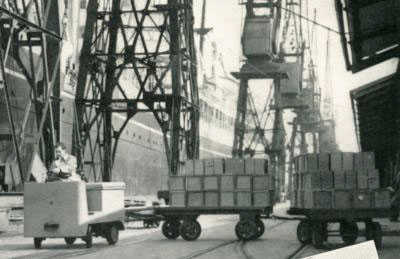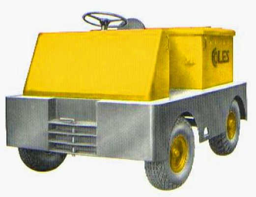 For anyone who can remember steam trains then these little tractor units will be a fixture in the childhood memory trundling up and down railway platforms pulling several trolleys with mailbags, cases or boxes of pigeons. They were the workhorse of the railways, warehouses, docks and quays all over the world. Although not a Coles unit they were in fact the product of Steel and Co. who took over Coles in 1939. After this time they were badged under the Coles logo. Battery driven with a small turning circle and solid wheels. Performance - Maximum tractive effort 4000 lb. (1814 kg.). Normal tractive effort 1200 lb. (544 kg.). Will haul 6 ton (6100 kg) trailer up 1 in 6 gradient. Speed on level 5-6 m.p.h. (8.047-9.65 km.p.h,) light, 4-5 m.p.h. (6.437-8.047 km.p.h.) loaded Dimensions Wheelbase - 60' (1524 mm.). Track 54" (1372 mm.). Overall length - 112" (2845 mm.) - With Buffer beams. Overall width - 86" (2185 mm.) - With Buffer beams. Overall length - 102" (2591 mm.) - Without Buffer Beams Overall width - 66" (1676 mm.) - Without Buffer Beams Overall height - 68" (1727 mm.) Weight (Less battery) - 30 cwts. (1500 kg.). For a full Specification SELECT HERE Click on any picture for bigger image |