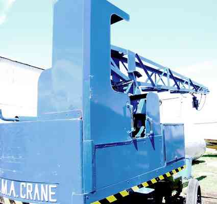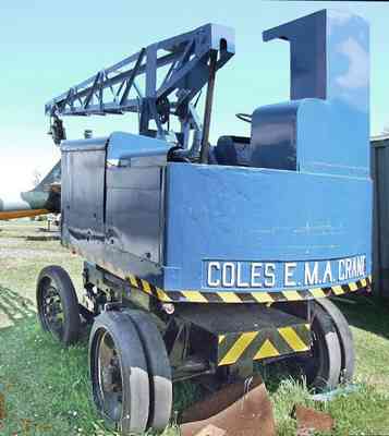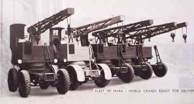 Developed for the air ministry the EMA (Electro Mobile Aerodrome) is a Twin-axled , four tyred electrically driven mobile crane with 360 slewing and 2 ton 2.4m jib. One major development was the non-rigid jib made of welded sections. This machine developed from the 2 ton Mk1 through Mk II, III, V, VI, and VII versions increasing capacities up to the 6 ton Mk VII.