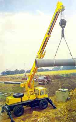 Notes - This was supposed to be the next entry into the Husky range one to provide a bigger boom and faster running. It had a longer wheel base and four wheel drive was only an option, its height and raised cabin made it more unstable and harder to work, lifting less that the 150 Husky. It was not success and very few were built, apart from this one example, the prototype at the works and one seen in the background of a yard phtograph, I know of no other examples. Click on any picture for bigger image |