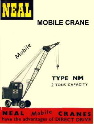 Notes - Typical rating on 25'0" jib - 2 ton at 14'0" - height of lift 22'3" - jibs upto 45'0" Supplied mounted on pneumatic tyres, crawler tracks or lorry chassis. Loading shovel attachment can be fitted to standard crane for rapid loading of loose materials. Bucket capacity upto three quarters cubic yard. Image 1. - A range of Cantilever Jib Cranes was available to meet requirements for long outreach and good clearance height close to the crane. This NM, with a low 'A' frame illustrates the minimum headroom required by special Cantilever Jib Cranes. Click on any picture for bigger image |