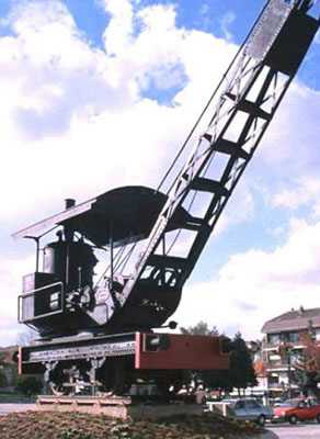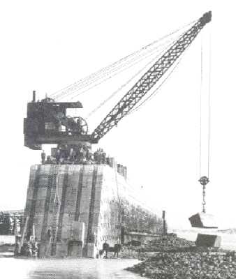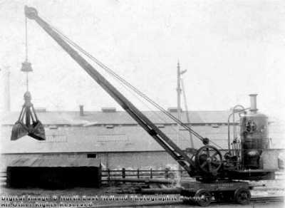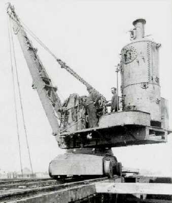 Notes - Image 1. Restored 1910 crane now on display at the Beamish Museum. Images 2 and 3. Taken outside the Derby works around 1900. Images 4 and 5. Both Coles working on harbours at the turn of the century. No 5 gives an idea of the size of these machines. Image 6. A restored unit form 1890 now sitting outside a museum in Madrid Image 7. Coles also supplied for other manufacturers. This Coles crane bolted onto a maintenance engine. Click on any picture for bigger image |