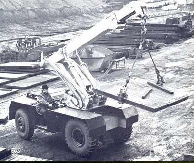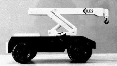 Telesescopic jib and twin action hydraulic base frame allow hook full motion from ground to 4.5m. Sold mainly in mainland Europe. Not meny have been seen but interestingly Coles had a sales model (see model toy section) made by Schuco toys.