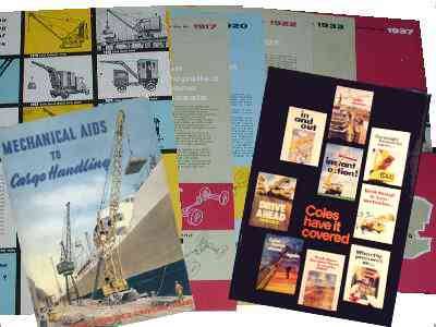 CATALOUGES AND LISTS OF TYPES This section includes lists and details of cranes from various catalogues OF different periods of Coles history. Currently there are Port Cranes from 1956 the General catalogue from 1970 and the range from 1975, as well a test list of all known units starting from 1964. Select here or Image Left |