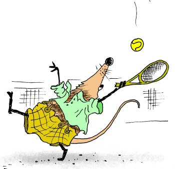 ![]() Rats Perhaps some rats Are quite nice chaps, But none of them play tennis, I don't mind mice Or hedgehogs, Although their games not good, I'll play a bear Or kangaroo But rats they don't play tennis, A mallaboo Will win right through And never loose a service, There's scraggy bats And handsome cats, Whose game is quite inspiring, There are big baboons And small raccoons, I'll even play a gerbil, There sporting chaps Who like some fun, But rats they don't play tennis. Tony |