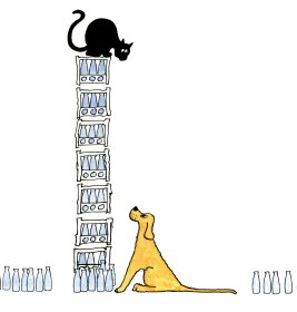 ![]() Tom and Clara Tom Blacks's Black tom Dusty and hairy, Used to hang round Sam Whites Dairy, Sam White Bought dog Called it Clara, Big dog chase cat Out of dairy, Black tom Not hurt Don't like Clara, Thinks life's not nice, Now Sams bought her. Cats think Cats do, Scheming and nasty, How to rid the world Of Clara's, Midnight Shed roof Cat half sleeping, Thinks up plan To do in Clara, Big dog Not daft, Trifle slow though, Not as quick as Tom Blacks Tom. Tom sneaks Slowly Round the dustbins, Makes no sound While Clara sleeps, Suddenly Noisily Tom screams loudly, Frightens Clara Who barks rapidly, Tom runs Sharply Round the milk crates, Clara sees him Follows wildly, Milk crates Scattering Bottles all shattering, Dog runs riot All round yard, Clara Treads on Small glass splinter Hearts front paw And cries in pain. Black Tom Sits by Sam Whites window, Looks inside At Nice warm fire, There on Soft rug Lays Old Clara, Front paw bandaged Milk in Saucer, Tom Blacks Black Tom Ain't not happy, Now much more He don't like Clara. Tony |