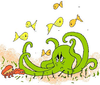 ![]() Octopus Down in the ocean Where the fish swim deep, Where all the crabs Go beep beep beep, Poor Mr Octopus Can't get sleep, Can't put his head down Can't close his eyes, Can't get a moment Of quite in the place, All the fish laugh at him All the crabs snap at him, Star fish giggle Anomies cackle, Dolphins whistle And the whales all sing, No one appreciates Octopuses need sleep, Poor Mr Octopus It's not much fun. Tony |