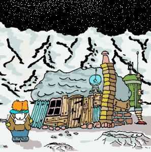 Tony likes living on the moon, it’s very quiet, you get terrific views, it’s very cheap and best of all no one says you are odd, your nose is too big or that they don't like your cat. On the Moon Tony lives in a small crottage, that is a cottage in a crater. It is a very nice crottage with a chimney, a place to put your bicycle and a lovely view of the stars through the window. Tony is very happy living there with his cat Tiggles and an orphan Breaker bird they found in the crater when they arrived. |