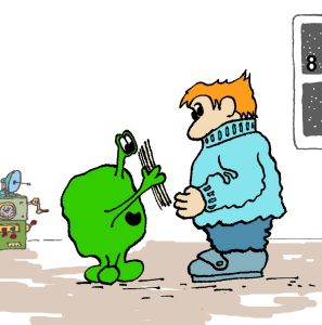 Ogg showed Tony the picture of the skateboard and ask if he could get him one on his next trip to the shop. "I don't see why not," said Tony looking at the picture of the skateboard in the catalogue. "On my next trip to Earth I will bring one back for you.” Tony looked at the picture then at Blogg, “Are you sure you want one of these?" Ogg nodded his head as fast as he could, which is difficult for a Blogg as they are almost all head. "Its perrrfect," said Ogg in that Bloggish way he had of speaking. |
