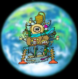 On his next trip to Earth to pick up some cornflakes and a packet of digestive biscuits, Tony went into the home shopping store and picked up a shiny new skateboard for Ogg. Tony also went into the local do-it-yourself shop to buy some grey paint to paint the top of his cottage with. The people living on the Moon all paint the roofs of their cottages grey so they can’t be seen from Earth. If people saw it was not a barren desolate place everyone would want to come and they would spoil it. |