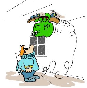 Ogg jumped onto the skateboard and zoomed around the room and he did really zoom around the room. Because of the low gravity on the Moon, Ogg was able to get up enough speed as he went across the floor to go up the wall, across the ceiling and down the opposite wall. Tony decided to gently guide Ogg through front the door and out of the crottage before Ogg started to break things. As Ogg left the crottage he was smiling from ear to ear or would have been if he had any ears. |