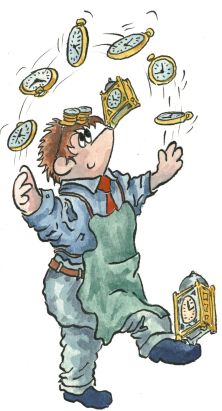 The clock mender pored the contents of the clock out onto the counter. An odd assortment of cogs, springs, wheels, an old mouse nest and a ginger biscuit rolled out onto the counter.